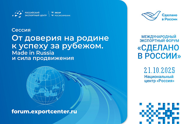 The Made in Russia International Export Forum will be held on October 21 at the National Center "Russia" in Moscow. Participation is free. Registration for the forum is open until October 13 on the official website: forum.exportcenter.ru.