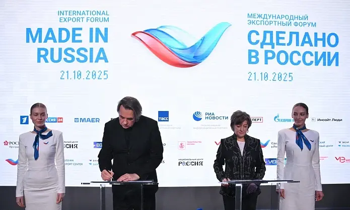 Russian Export Center (REC, VEB Group) and Channel One will jointly promote Russian products under the Made in Russia national brand. The corresponding agreement was signed on October 21 at the Made in Russia International Export Forum by REC Director Veronika Nikishina and Channel One CEO Konstantin Ernst.